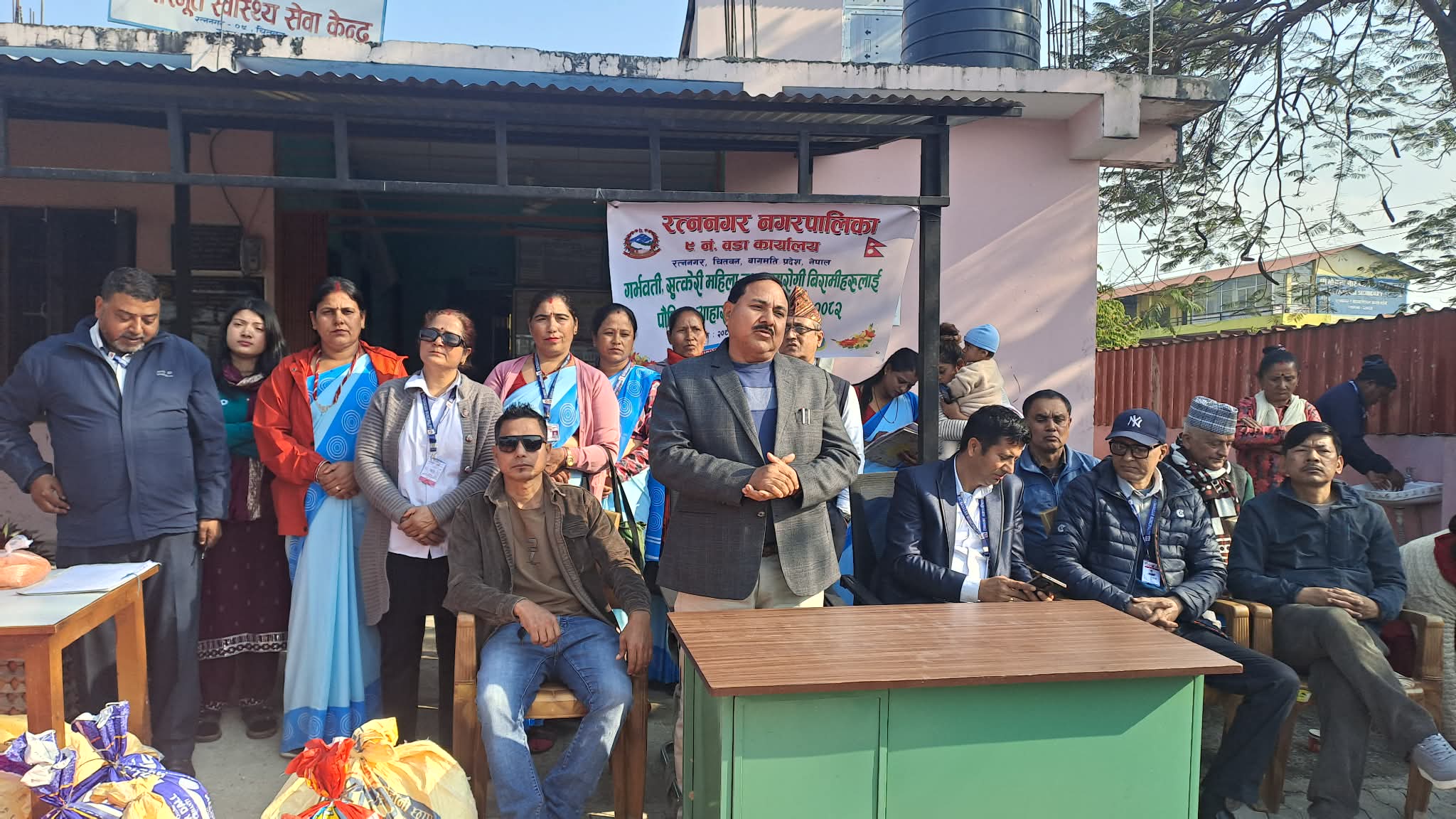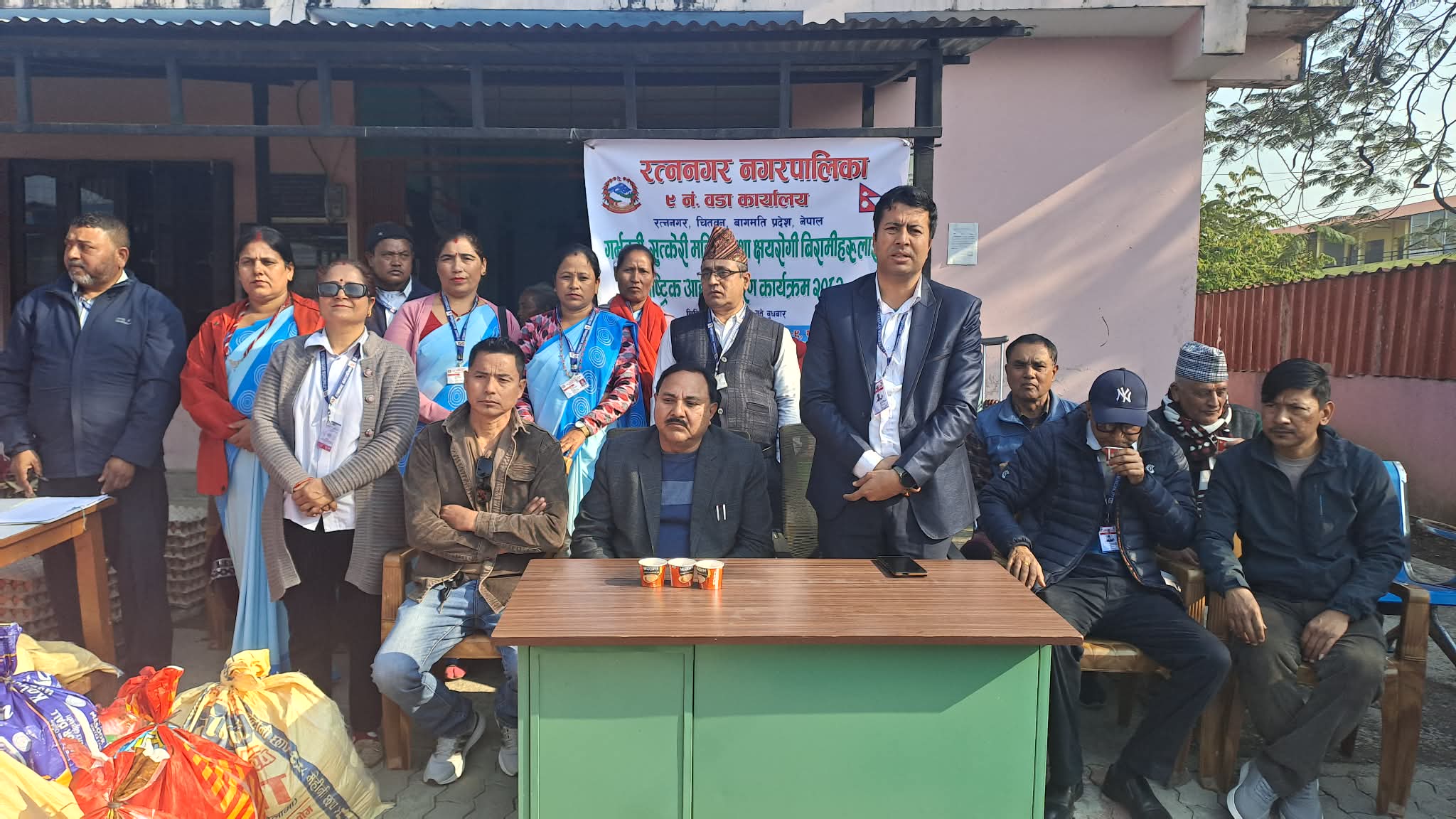 रत्ननगर–९ का वडाध्यक्ष अनन्त अधिकारीको अध्यक्षतामा भएको कार्यक्रममा प्रमुखअतिथि रत्ननगर नगरपालिकाका प्रमुख प्रशासकीय अधिकृत प्रकाश खनालले वडा कार्यालयले साङ्केतिकरूपमा स्वास्थ्य सचेतनाका लागि पोषण र सरसफाइ सामग्री वितरण गरेको बताए । रत्ननगरले आठपटक गर्भवती परीक्षण र ९८ प्रकारका औषधि निःशुल्क वितरण गर्दै आएको र तीन सरकारी अस्पतालमा ७५ लाखबराबरको मेडिकल कोष खडा गरी नागरिकलाई स्वास्थ्यसेवा प्रदान गर्दै आइरहेको जानकारी दिए ।